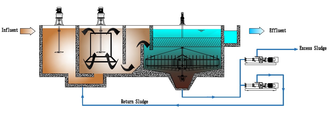 A high-concentration suspended floc layer is maintained in the reaction zone through a sludge recirculation system. Fine particles in the raw water collide with and adsorb onto the recirculated flocs, forming larger and denser floc particles.