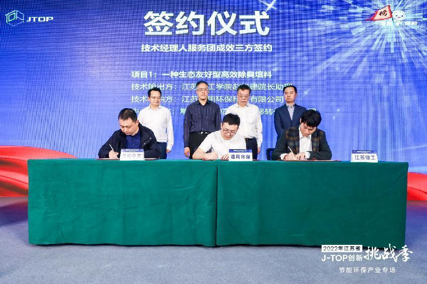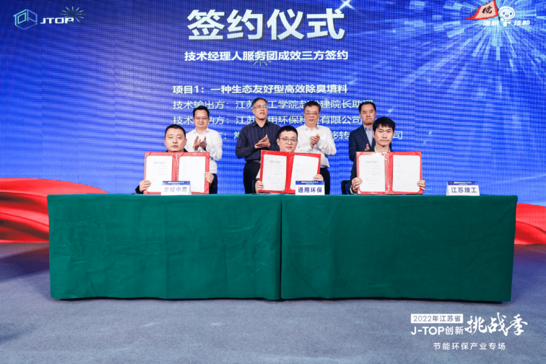 我公司与江苏理工学院就“一种生态友好型高效除臭填料”项目进行三方签约。