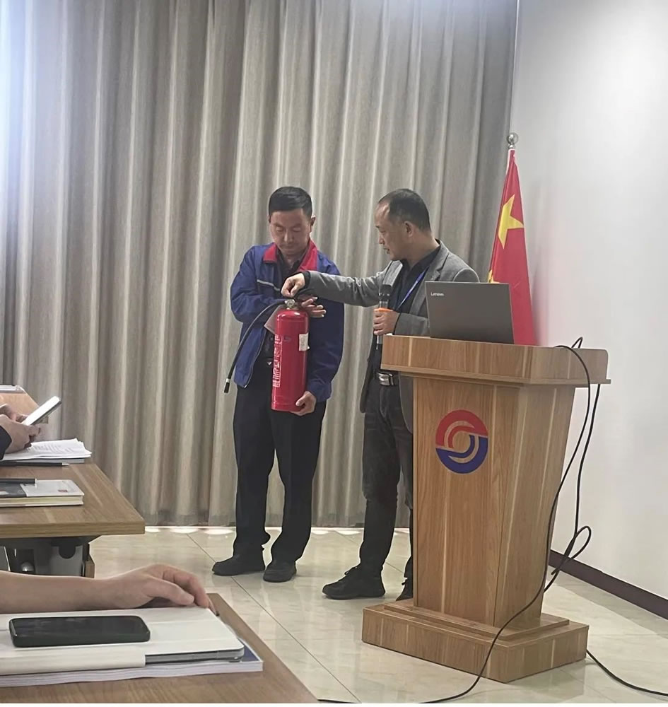 首先由应急演练副总指挥张盘新进行消防安全知识培训,主要包括火灾原因、灭火原则、灭火方法、消防器材分类及使用注意事项、火灾逃生知识、火灾视频警示及公司的逃生路线。