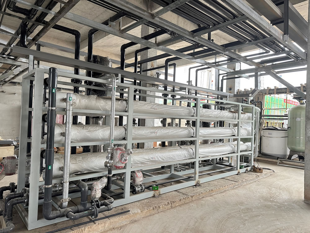 深度处理采用“多介质过滤+树脂软化+超滤+一级反渗透+浓水树脂软化+二级反渗透(浓水反渗透)”工艺